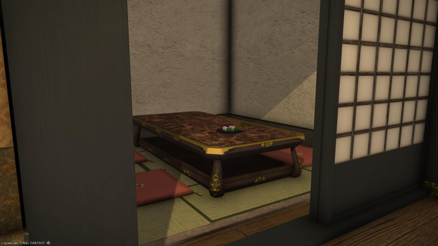 Nestled in the streets of Kugane, the first Wisteria Teahouse is a small but bustling teahouse, popular by nobility and commoners alike. It has two private rooms as well as a communal seating area for singles and for those wishing to meet new people.